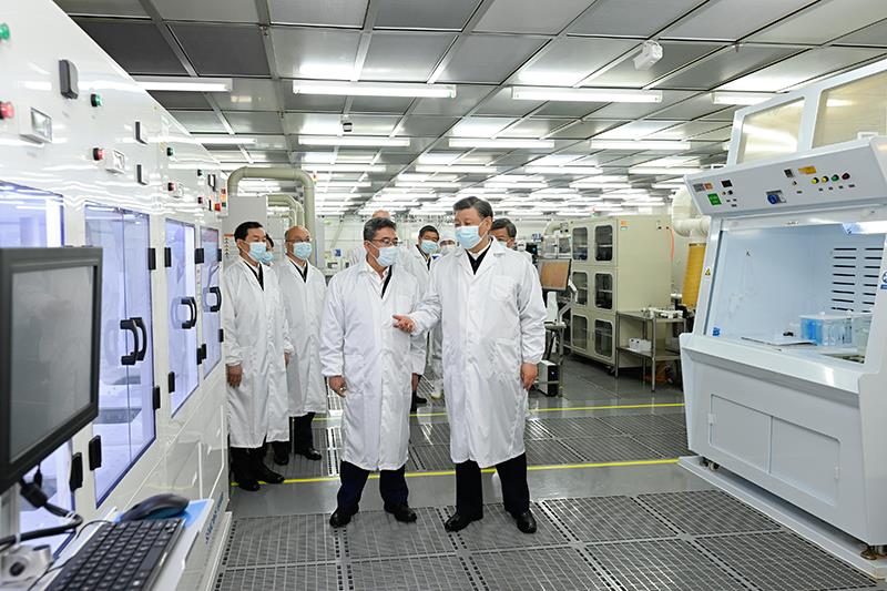 △2023年5月12日,习近平总书记在位于河北石家庄的中国电科产业基础研究院生产车间考察。