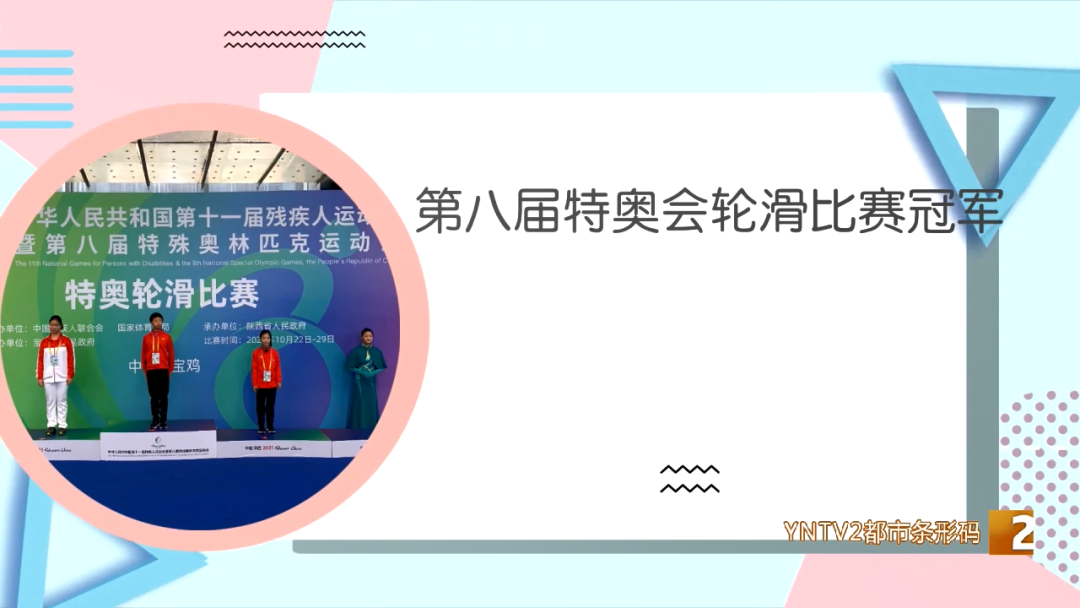 盘龙区培智学校 学生 罗昱茗:“我就自己给我自己加个油,100米只拿到了第二,这次只能成功不能失败,结果4×400米靠我们团队赢得了第一。”