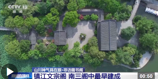 总台记者 徐大为:文宗阁的建设,当时也是仿照了宁波天一阁藏书楼的样式来建设的,重点突出了防火的功能。大家也不难发现,在七阁中间,都是以“文”字开头“阁”字结尾,而中间七个字是不一样的。唯独只有镇江的文宗阁是不带水字旁的,这也成为它的特别之处。
