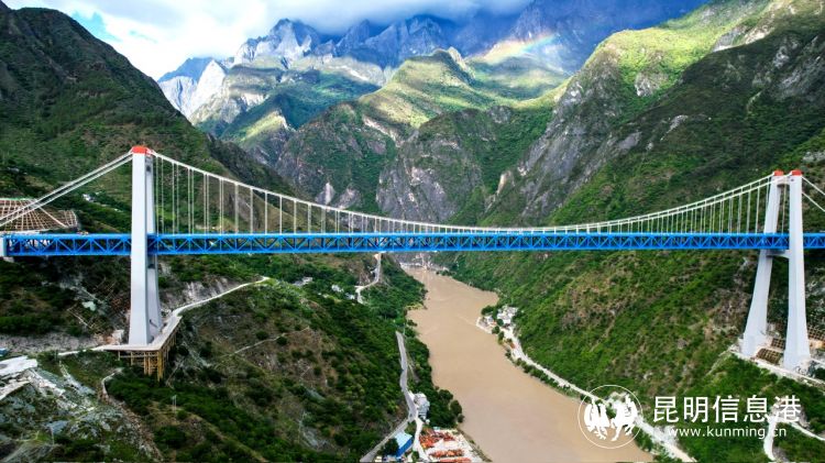 滇藏铁路金沙江特大桥一桥连两隧,一端是玉龙雪山隧道,另一端是哈巴雪山隧道,将云南省丽江市与迪庆州连通。龚建强/摄
