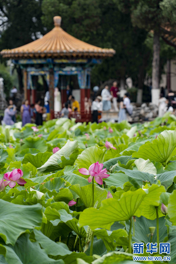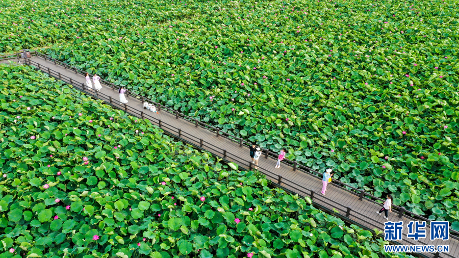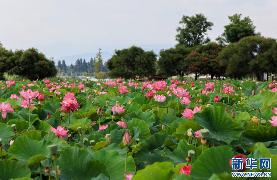 夏日里云南各地盛开的荷花,透露着独属于夏天的浪漫,俯仰皆是画,触目即成诗,荷花盛开的地方也是结伴同游赏美景、拍美照的绝佳去处。(新华网)