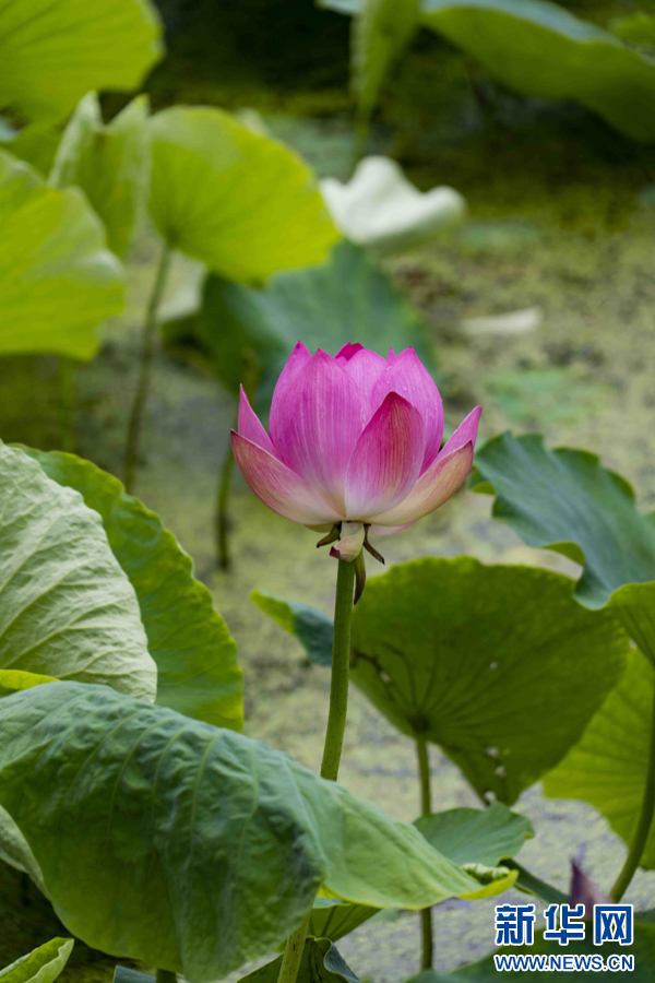 弥勒市湖泉生态园内亭亭玉立的荷花(6月11日摄)。(郑益 摄)