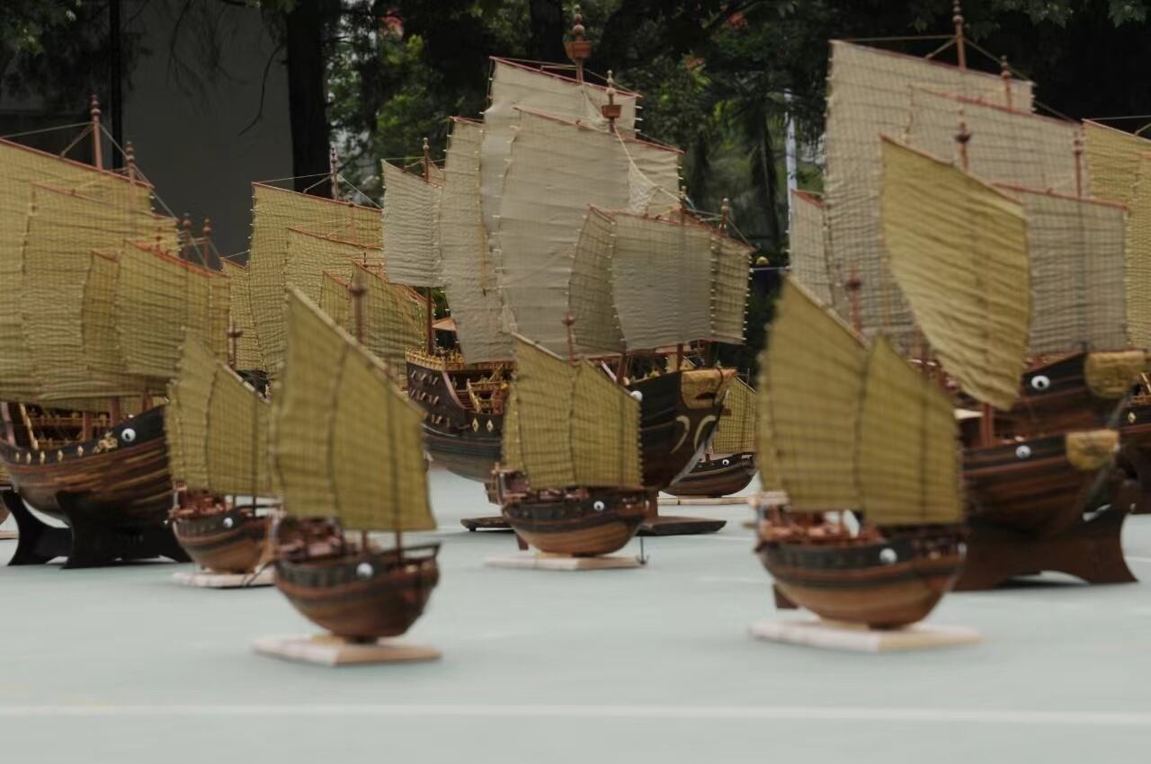 图为郑和船队模型在昆明市外国语学校展出 受访者供图