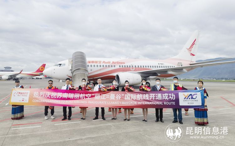 昆明信息港讯 记者上官艳君 7月11日,苏南瑞丽航空“丽江=曼谷”国际航线首航。航线的开通,将为丽江和泰国旅游市场带来更多发展机遇,也将促进云南与泰国在经贸、文化等多领域合作机会。
