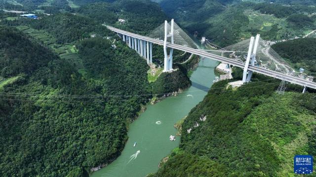 7月11日,游客在贵州省遵义市播州区乌江寨景区游览(无人机照片)。新华社发(罗星汉 摄)