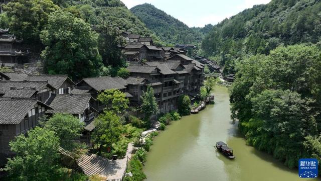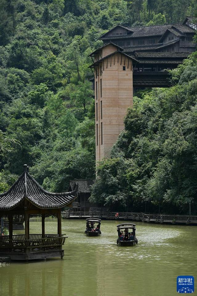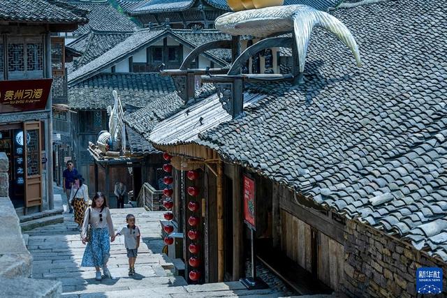 7月11日,游客在贵州省遵义市播州区乌江寨景区游览。新华社发(吴常琛 摄)