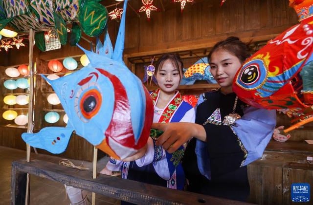 7月11日,游客在贵州省遵义市播州区乌江寨景区一家灯笼作坊选购手工灯笼。新华社发(胡攀学 摄)
