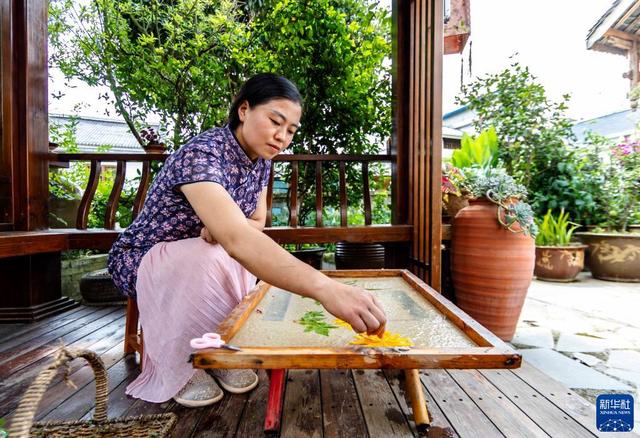 7月11日,游客在贵州省遵义市播州区枫香镇花茂村体验手工古法造纸。新华社发(范晖 摄)