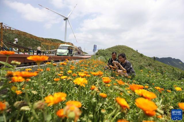 7月11日,游客在贵州省遵义市播州区洪关太阳坪景区游玩。新华社发(王波 摄)