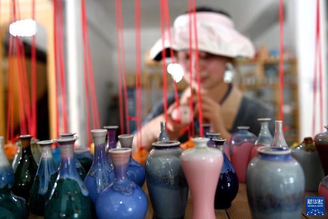 7月11日,游客在贵州省遵义市播州区枫香镇花茂村土陶制作技艺馆选购土陶。新华社发(谢宗政 摄)