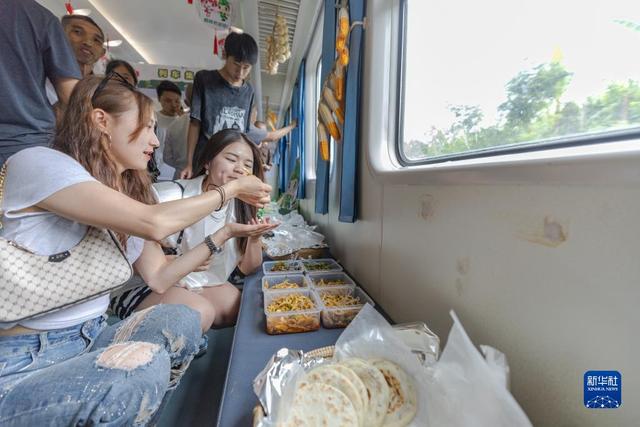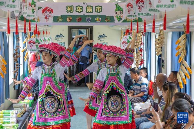 暑运以来,中国铁路成都局集团有限公司重庆客运段在贵州往返重庆的5630/5629次普速列车上打造主题文化车厢,增设“列车集市”和非遗大舞台,在助农增收的同时,满足旅客暑期多元化出行需求。旅客乘坐该趟列车,不仅可欣赏沿途各地的风景,还能在列车上逛“集市”、看非遗表演,体验别样旅途时光。