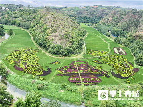 进入小暑节气,在宜良县耿家营乡河湾村,一幅幅由彩色水稻栽插种植的“大地母子”“中国式现代化”画卷跃然在河湾、马蹄湾的稻田里,正是游客感受大自然的鬼斧神工和现代农业科技之美的不二佳期。