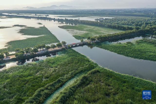 7月9日拍摄的白云湖国家湿地公园景色(无人机照片)。新华社记者 朱峥 摄