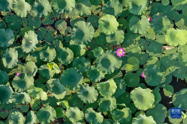 7月9日,白云湖国家湿地公园内荷花盛开(无人机照片)。新华社记者 朱峥 摄