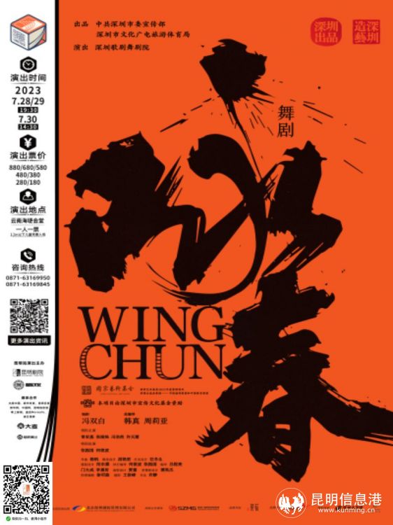 演出简介:舞剧《咏春》由中共深圳市委宣传部、深圳市文化广电旅游体育局出品,深圳歌剧舞剧院创排演出,分别获得2022年度国家艺术基金、广东省文艺精品(文艺人才)专项扶持资金与深圳市宣传文化基金共同资助。该剧精巧呈现咏春拳、香云纱的“双非遗”以“双场景”的叙事方式交替两个时空,再加上常宏基、张娅姝两位领衔主演的超群“舞力”,表达了“致敬平凡英雄”的主题,赋予了《咏春》独一无二的艺术价值,是目前中国演艺舞台上一部现象级作品。