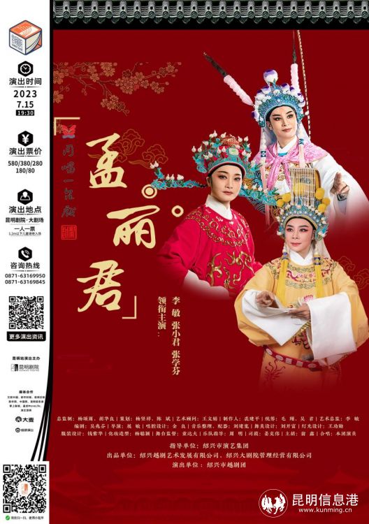 这个七月,昆明剧院以艺术之名,邀春城观众感受演出盛宴。绍兴市越剧团明星版越剧《梁山伯与祝英台》《孟丽君》即将亮相昆明,年度现象级爆款舞剧《咏春》春城首演临近,首场售罄掀观剧热潮。这个七月,音乐会、越剧、舞剧、话剧、独角戏、声音剧等诸多舞台精品将上演,昆明剧院好戏连连、异彩纷呈!