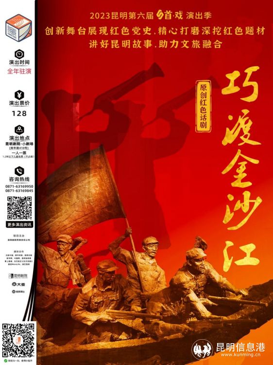 让观众解锁文艺版党建活动,让主题党日更具活力!2023年,红色主题话剧《巧渡金沙江》将常驻昆明剧院·小剧场,全年接受冠名和包场,并可根据活动主办方要求,举办主题学习等定制活动。