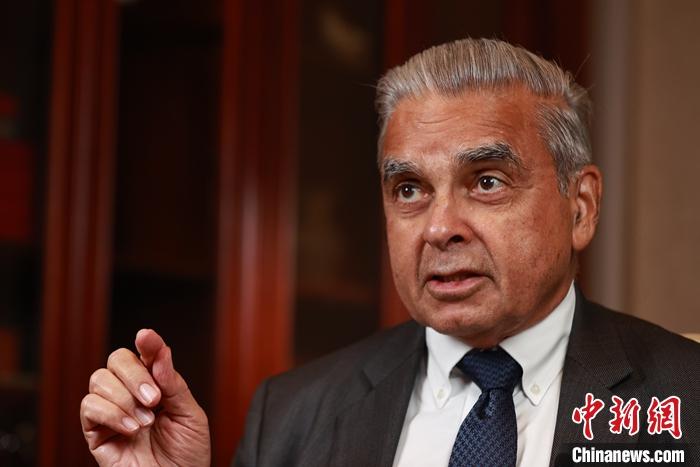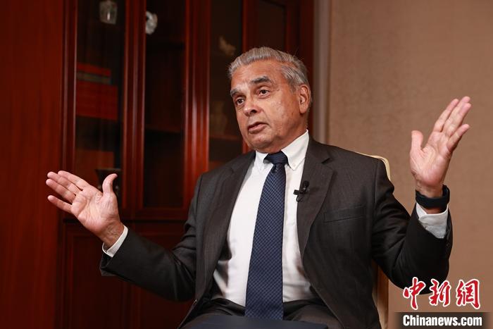 7月12日,新加坡国立大学李光耀公共政策学院前院长马凯硕(Kishore Mahbubani)在北京接受中新社记者专访,对“一带一路”倡议成果与前景、所谓“债务陷阱”、如何看待美欧出台全球基建计划与“一带一路”关系等热点问题进行解读。 中新社记者 蒋启明 摄