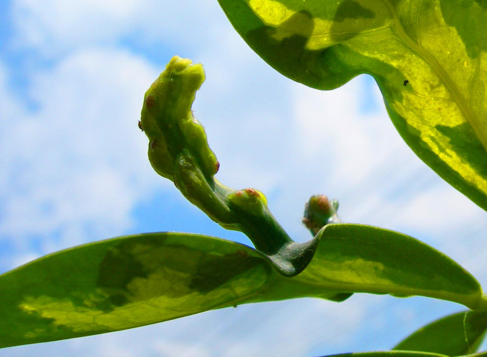 小昆虫在鸭脚木树叶上建起的“高楼大厦”