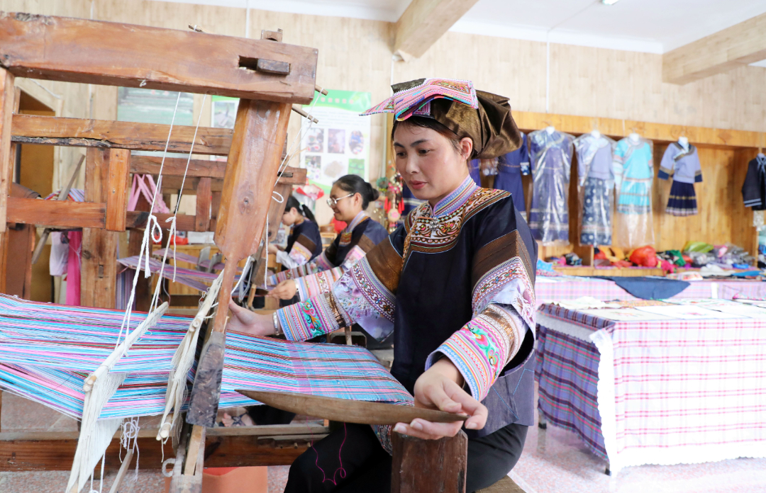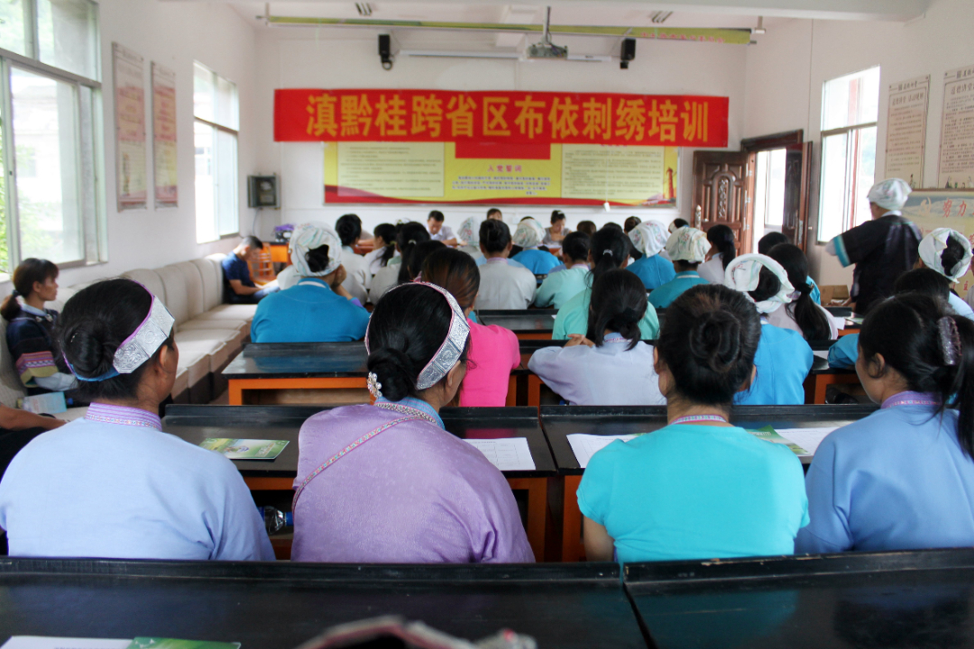 积极创新发展方式,走融合发展、区域协调发展道路,成立滇黔桂跨省区刺绣产业联盟,充分利用其产品、技术、经营、人才等综合优势,引导掌握刺绣手艺的人员加入,全力帮助群众增收致富。“我和周边村寨的绣娘一起做刺绣就卖给当地人,后来,在乡政府的帮助下,成立了滇黔桂刺绣联盟,大家一起发展刺绣产业,接到订单后,有的负责刺绣,有的负责裁剪缝制,大家齐心协力完成,我们的绣品越做越好,现在卖到全国的好多地方。”罗平珍秀布依手工产业合作社负责人李连珍介绍说。目前,三省(区)600余名布依族、壮族等妇女发展指尖经济,实现居家就业,每月增收近2000元。同时,联盟创新“1+3”模式,即一家办培训三家共学习,破解了毗邻乡镇群众学习农业种养技术和民族服饰刺绣技艺难题的问题,共培训800余人次。