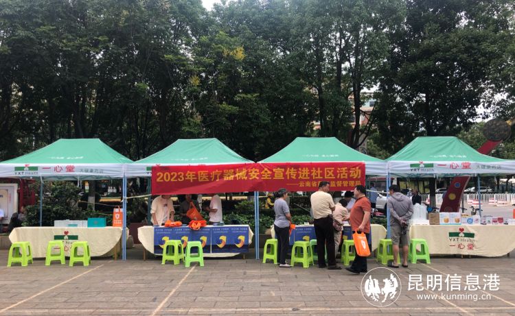 昆明信息港讯 记者昝娟娟 “您知道《医疗器械监督管理条例》有哪些内容吗?”“医疗器械要到正规的大药房或者医疗器械公司比较安全……不要听信广告或其他不实宣传中所谓100%的治疗效果,要特别注意了解医疗器械的副作用……”在2023年医疗器械安全宣传周期间,省药品监督管理局联合一心堂药业集团股份有限公司以“安全用械共享健康”为主题,于7月13日下午在昆明市五华区锦兴苑社区组织开展了医疗器械安全知识进社区宣传活动。