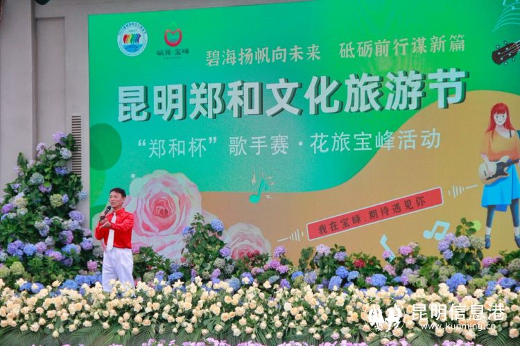 昆明信息港讯 记者李莹 7月15日2023昆明郑和文化旅游节“郑和杯”歌手赛暨“花旅宝峰”活动在宝峰民族文化广场举办,50余名来自民间和高校的选手一展歌喉,游客群众从十里八乡齐聚宝峰,共享这场欢歌笑语、活力四射的民间盛会。