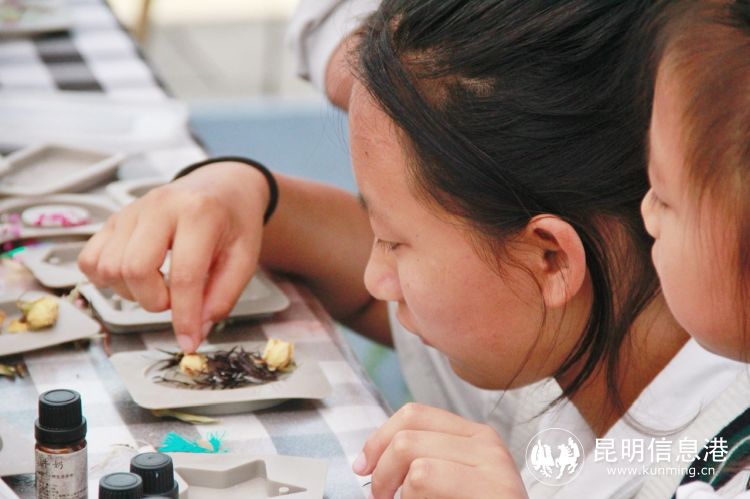舞台上的歌声悠扬婉转,舞台下“花旅宝峰”活动同样缤纷多彩。体验专区集花束制作、花卉团扇制作、古法造纸、鹅卵石画、陶艺制作等活动为一体,邀请市民和游客在共同感受非遗文化的精彩,在亲手体验中领略民间艺术绽放的别样魅力。