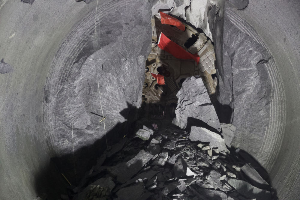 频繁的岩爆带来的风险更大。统计数据显示,在岩爆高发区域,掘进机平均每掘进1米就会遭遇一次岩爆,高峰时每天岩爆次数多达286次。施工人员说,岩爆时碎石像子弹一样射出几十米,让人防不胜防。为了安全,一线工人甚至要“全副武装”,穿上防弹衣、戴上钢盔。