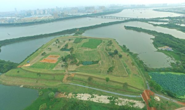 盘龙城国家考古遗址公园商代城垣区。(鸟瞰图)