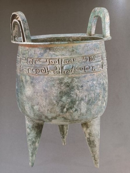 盘龙城遗址出土有青铜器、陶器、玉器等遗物3000余件,这些文物充分彰显了商代盘龙城的发展高度。杨家湾11号墓出土的大圆鼎通高85厘米,是目前我国所见年代最早、体量最大的青铜圆鼎。杨家湾17号墓出土的青铜带鋬觚形器,兼具爵口、斝鋬、觚身的特征,器形前所未有,国内仅此一件。同墓出土的绿松石镶金饰件,以绿松石作为兽面纹的主体,金片饰作目、牙、眉等关键部件,这是中原文化系统所见最早的成形金器。小嘴3号墓出土的有领玉璧直径22厘米,是目前见到的年代最早、体量最大的有领玉璧,属于商王朝制作的代表性玉器。
