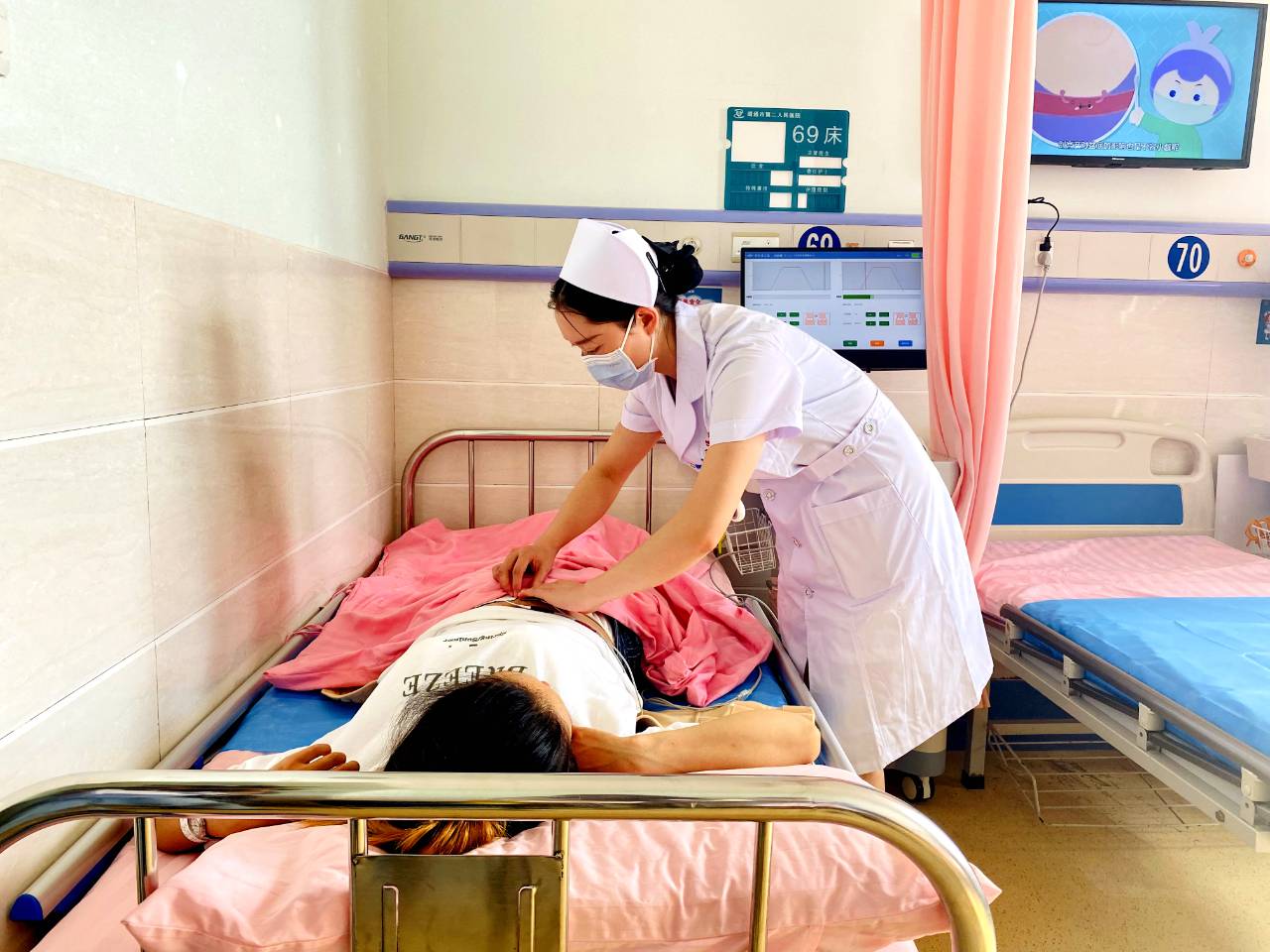 “他们的细节做得非常到位,住进来以后,护士帮我把手指甲、脚趾甲修剪整齐,预防我刮伤宝宝。病房布置得非常温馨,有热水,24小时恒温马桶,每天洗澡也方便。护士每天都会来给我量体温,并叮嘱我哪里不舒服和有什么需求,就跟她们说。这是我生第二个宝宝,从来检查的时候就预约了这里的温馨病房,我感觉这是我住过最好的医院,环境、服务都是最好的。”在昭通市第二人民医院(以下简称:市二院)产科的温馨病房内,主管护士正在给产妇邓家琴调整床位的高度,这是她生完第二个孩子住院的第5天。