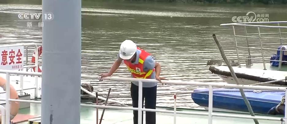 在深圳河皇岗码头段,水务部门的工作人员正在进行台风前的巡查工作。台风来临前,河流船只必须全部回港避险并进行加固处理,沿河的各项工程必须停工。