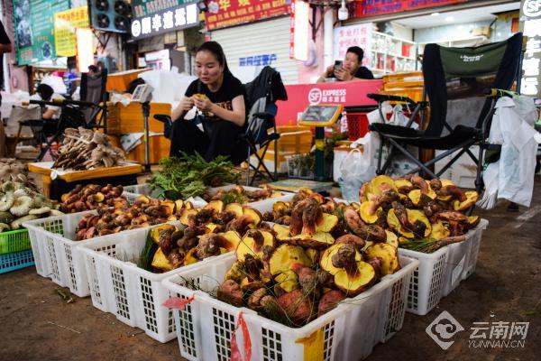云南野生菌种类近千种,占全国90%,市场内牛肝菌、青头菌、干巴菌、鸡油菌等野生菌应有尽有,还有稀有的松茸、鸡枞等野生菌。这里也是全国最大的野生食用菌经销、物流中心,每年野生菌上市,吸引来自云南省各地州以及贵州、四川乃至国外等菌商汇集于此交易,旺季最高交易量一天可达520吨。(云南网 记者黄兴能 实习生许贵亮)