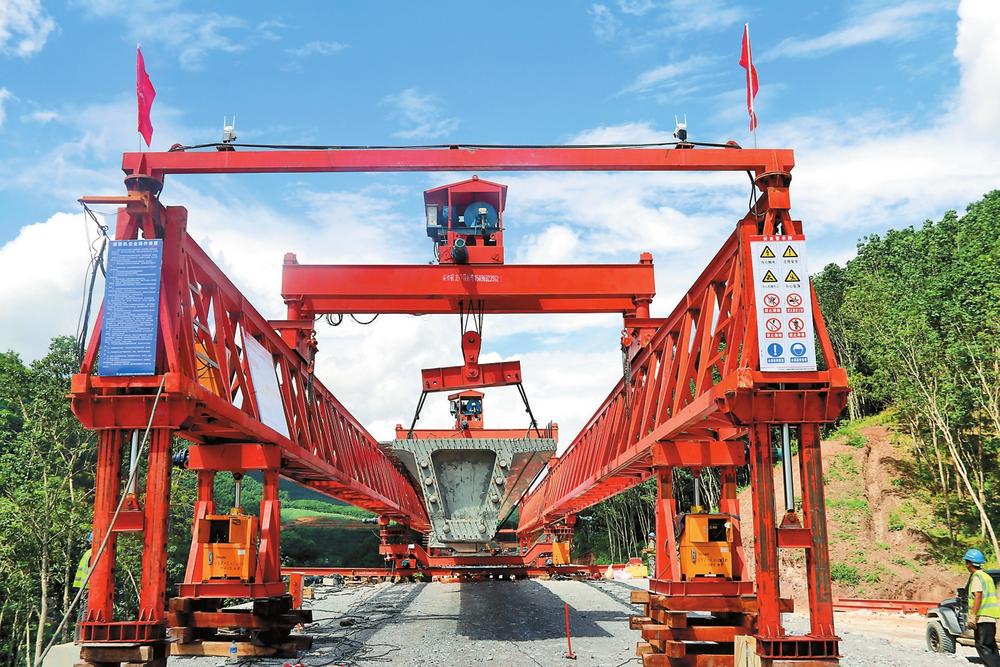 勐关高速公路全线首片箱梁成功架设