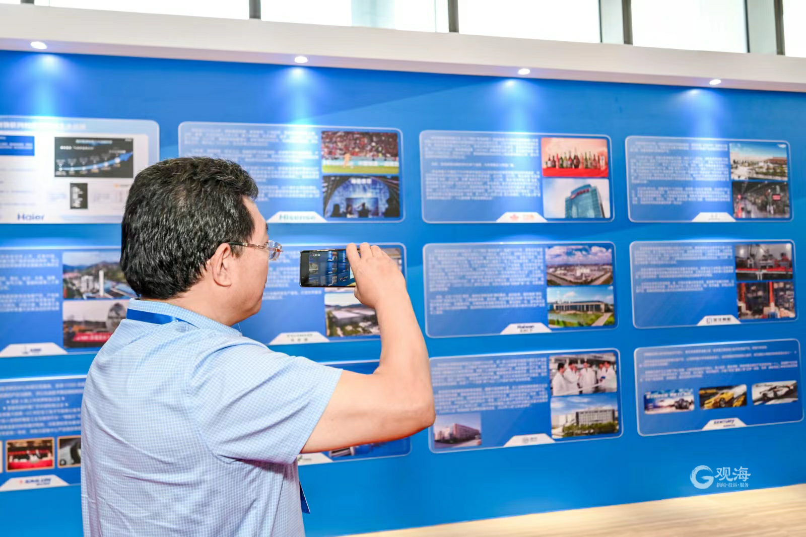 青岛品牌建设历程展吸引与会嘉宾参观拍照。