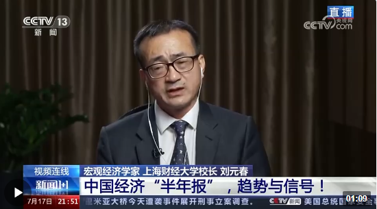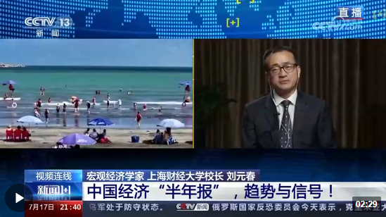 宏观经济学家、上海财经大学校长 刘元春:①今年上半年,最终消费支出对经济增长的贡献率超过70%,对于这一点,很多人感受的可能不是特别明显。但通过另一组数据的对比,也就是上半年,整个消费同比增长8.2%左右,投资增长3.8%,出口增长3.7%,大家就能够感受到消费对于经济增长明显的基础性作用。