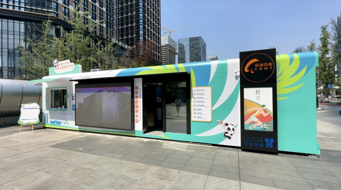 “很有现代感,造型很精致。”“挺暖心的,各种资讯都能了解到。”这几天,在成都春熙路太古里商圈,多了一个银色外壳、熊猫造型的建筑,吸引了不少市民和游客的目光。它就是由成都大运会执委会人力资源部(志愿者部)、共青团成都市委共同打造的成都大运会城市志愿服务小站。