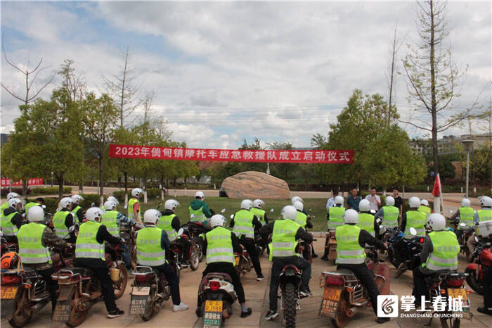 寻甸县应急局局长马明泽宣读了《关于成立摩托车救援队的通知》,倘甸镇党委副书记、代理镇长李文华给3个摩托车应急分队授旗。倘甸镇摩托车应急救援队队长为镇党委副书记、代理镇长,副队长为分管应急安全领导。摩托车应急救援队按照地域情况划分为3个应急分队,由镇应急办干部任分队组长。