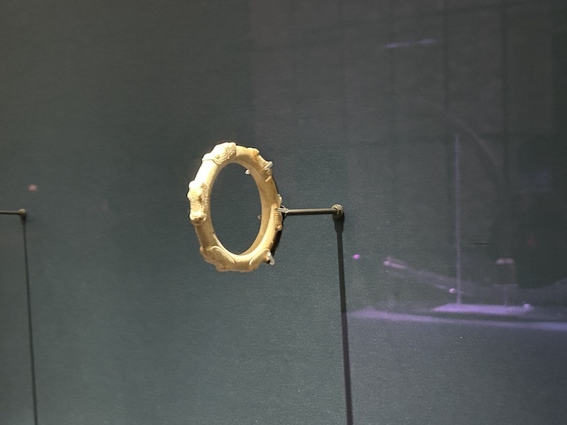 展览现场 良渚文化 龙首玉镯 2021年浙江余姚北村遗址106号墓出土 浙江省文物考古研究所藏