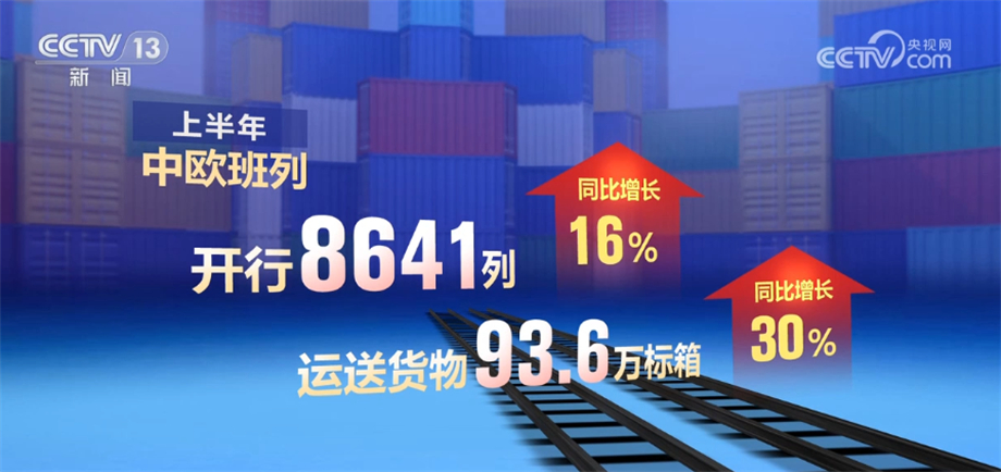 上半年,中欧班列开行8641列、运送货物93.6万标箱,同比分别增长16%、30%。