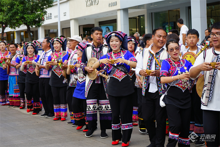 一大早,椒莲广场道路上就人山人海,彝家弦子舞、祝酒歌,白族霸王鞭,苗族芦笙舞……身着民族盛装的各族群众,拿着乐器,唱着歌、跳着舞,用最“丘北味儿”的迎宾方式欢迎四方来宾共赴这场一年一度的盛会。