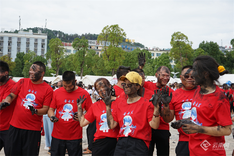 “抹、抹、抹、抹、抹花脸……”伴随着欢快的音乐,“花脸节”活动的压轴大戏——抹花脸正式拉开帷幕,人们从四面齐聚到广场上,不论民族,不分男女老少,加入到抹花脸的狂欢中,用一把黑灰表达“抹黑全身 幸福终生”美好祝愿,欢乐溢满了丘北县城。