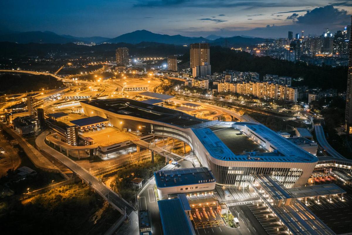 旅检大楼采取统一方案设计,深港同步推进建设,口岸区域无缝对接,浑然一体。从天空俯瞰就是一栋建筑,分界线两侧的建筑无论是从颜色、规格,还是材质、款式方面都保持了高度一致,可以说莲塘/香园围口岸是成功践行“一国两制”伟大构想的典型建筑。