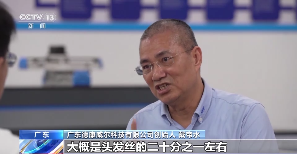 广东德康威尔科技有限公司创始人 戴帝水:它的头尾的精度、直线度,我们是要求4个微米(误差)。4个微米是什么概念呢,大概是头发丝的二十分之一左右。那么它不能偏差这么多,说明这台设备的精度,就是直线度这个精度是要求非常高的。