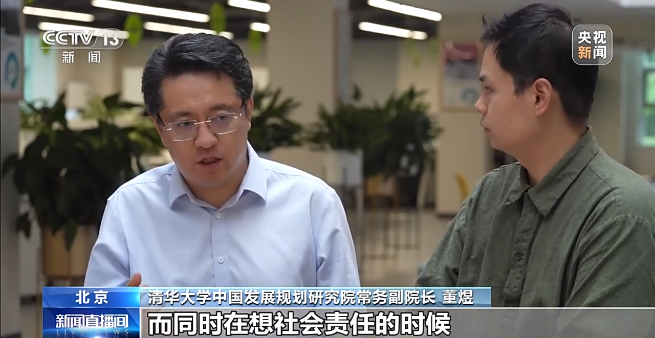 清华大学中国发展规划研究院常务副院长 董煜:当一个企业家他眼里不光是企业本身的利润,而同时在想社会责任的时候,实际上意味着这个企业家具备了更加广阔的视野,而这种视野会反馈到他对于市场机会的捕捉,以及他去实现经济效益与社会效益的共同促进上面来。我相信,他们一定在我们推进现代化产业体系的构建当中,在高质量发展当中,能够脱颖而出,能够带动各行各业的成长。