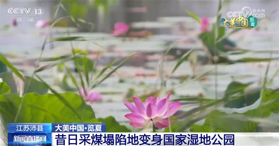 眼下,江苏沛县安国湖国家湿地公园的荷花次第绽放,从空中俯瞰,红色的荷花点缀在绿色的荷叶之间,形成了一派美丽的夏日景色。安国湖国家湿地公园规划建设面积517.06公顷,分为生态保育区、恢复重建区、合理利用区三大功能区,其中湿地率达75.84%。据了解,十几年前,这里还是一片采煤塌陷地。从2012年起,黄河故道沿线地区综合开发启动,当地开始建设湿地公园,通过地形重塑、水系贯通、生态驳岸修复、植被恢复等生态治理,目前这里已经成为全国采煤塌陷地生态修复示范区。