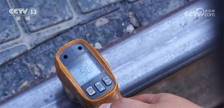 李士强所在的哈密东站是兰新铁路重要货运枢纽,承担着进出疆货物列车的编组、中转等职能。这几天的持续高温给身处室外的调车员们带来了严峻“烤”验,长时间的太阳灸烤,此时,铁轨的温度已经超过50℃。