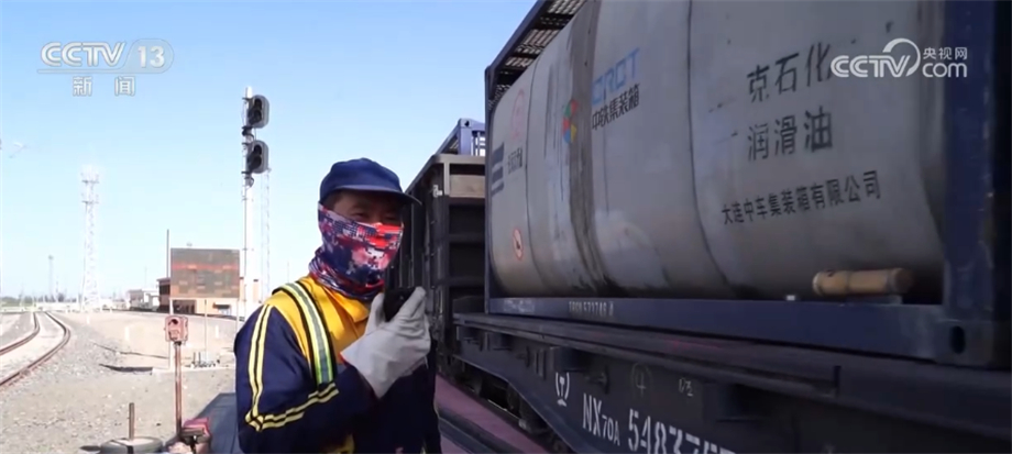 央视网消息:这几天,新疆哈密市迎来持续高温天气,最高气温达到40℃以上。在新疆东部的铁路编组站——哈密东站,经过烈日的暴晒,股道间的温度常常超过50℃,调车员顶着高温坚守在岗位上,全力组织列车多接多发、快解快编,确保车站运输畅通。