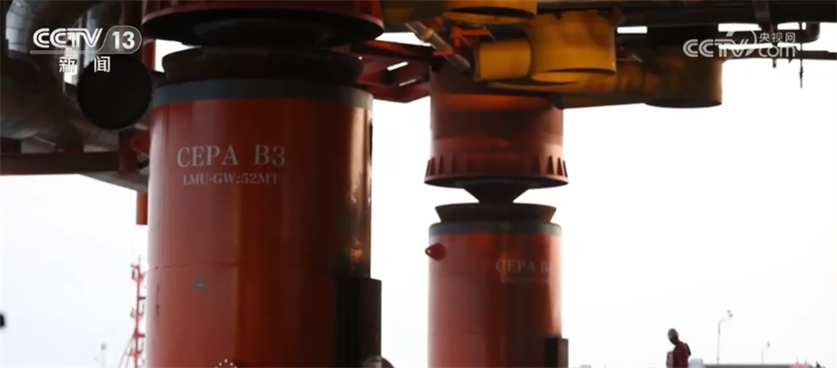 海油工程渤中19-6浮托负责人 邱炜:我们通常采用注水压载的方式缓慢转移重量,具体哪些舱需要注水、每个舱注多少水,都需要经过精确计算。我们自主研发了这一套减震缓冲装置,可以巧妙地将万钧之力平稳地坐在基座上。
