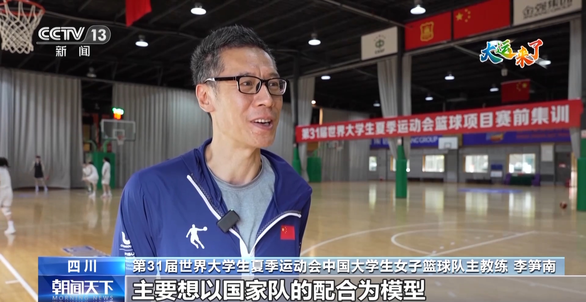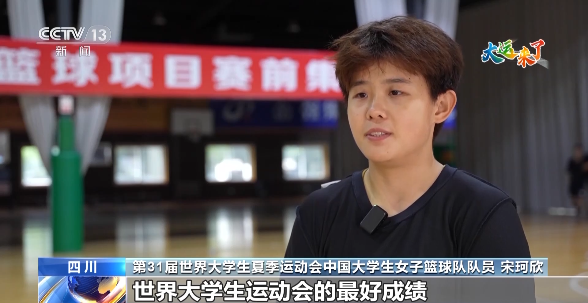 第31届世界大学生夏季运动会中国大学生女子篮球队队员 宋珂欣:今年是在家门口比赛,我们当然希望能创造中国队在世界大学生运动会的最好成绩。通过这段时间的训练,教练有针对性地给我们布置进攻还有防守的一些训练,争取在最短的时间进行磨合。